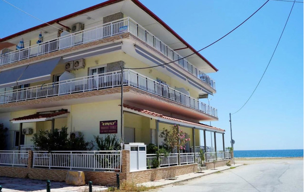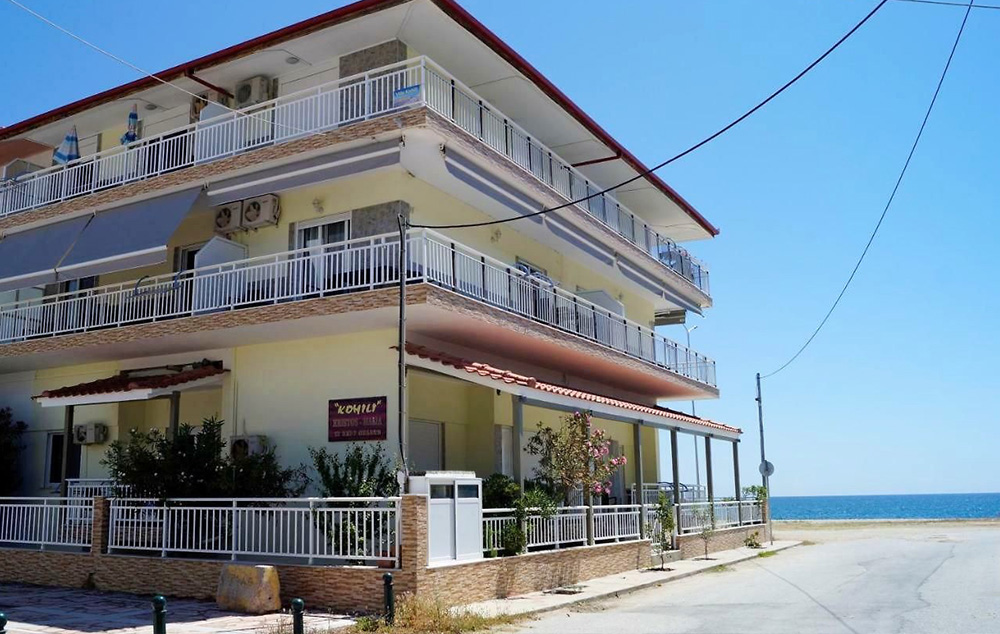 Opis: Nalazi se na glavnom putu kroz Nea Vrasnu, a preko puta velikih super marketa. Poseduje dvokrevetne, trokrevetne, četvorokrevetne i petokrevetne studije, kao i četvorokrevetne i petokrevetne apartmane koji se nalaze u prizemlju, na prvom spratu ili drugom spratu. Smeštajne jedinice u prizemlju su renovirane. Svaka od njih ima opremljen kuhinjski deo, kupatilo/wc, terasu, TV, WiFi internet i klima uređaj (uz doplatu na licu mesta od 5€ dnevno).
