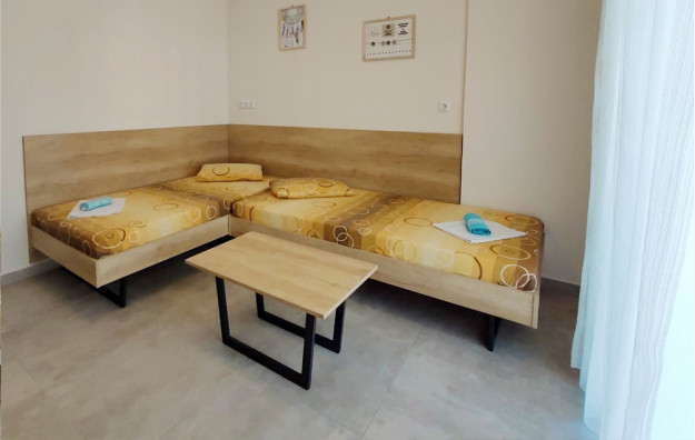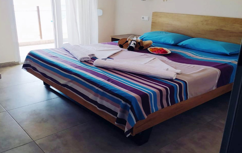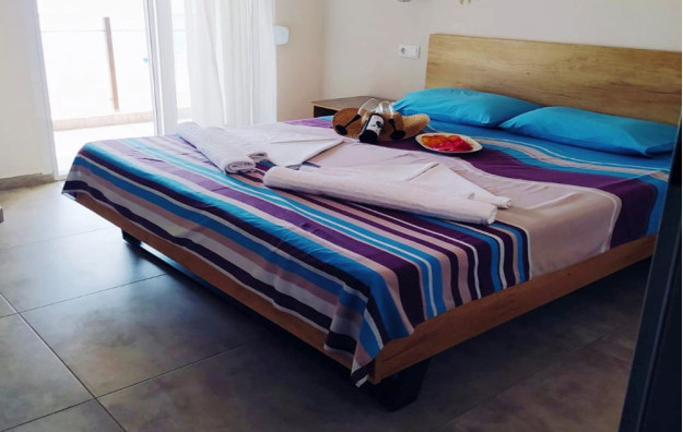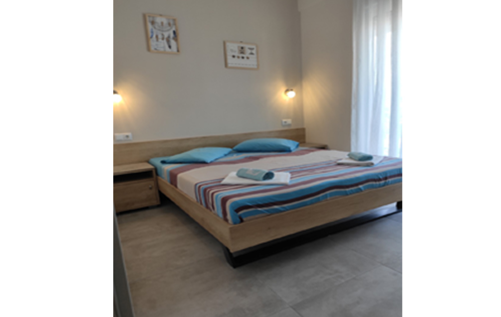 Opis: Smeštajni kapaciteti u našoj ponudi su dvokrevetna, trokrevetna i četvorokrevetna studija, kao i četvorokrevetni i petokrevetni apartmani, koji se nalaze u prizemlju, na prvom i drugom spratu, a svi imaju opremljen kuhinjski deo, kupatilo/wc, terasu, TV, WiFi internet i klima uređaj (uz doplatu na licu mesta od 6€ dnevno).