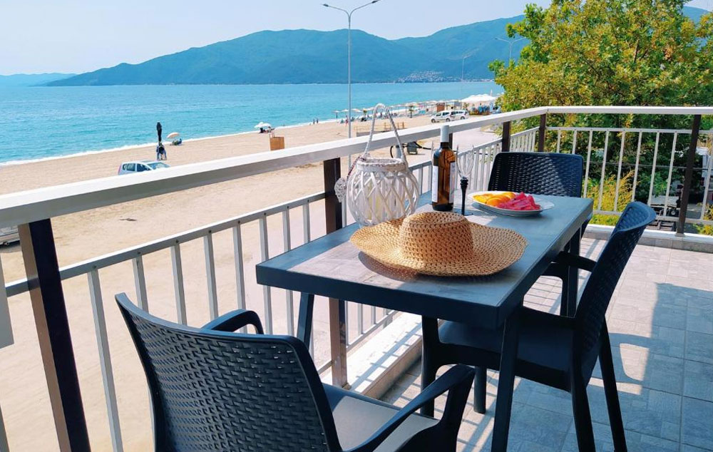 Opis: Smeštajni kapaciteti u našoj ponudi su dvokrevetna, trokrevetna i četvorokrevetna studija, kao i četvorokrevetni i petokrevetni apartmani, koji se nalaze u prizemlju, na prvom i drugom spratu, a svi imaju opremljen kuhinjski deo, kupatilo/wc, terasu, TV, WiFi internet i klima uređaj (uz doplatu na licu mesta od 5€ dnevno).