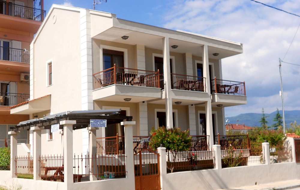 Opis: Vila Tasos u ponudi ima dvokrevetne, trokrevetne i četvorokrevetne studije na visokom prizemlju i drugom spratu. Sve smeštajne jedinice poseduju opremljen kuhinjski deo, kupatilo, terasu, TV, klima uređaj (uz doplatu na licu mesta od 7€ dnevno).