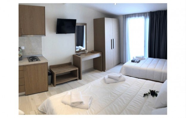 Opis: Vila Eleni je nova vila, a raspolaže trokrevetnim i četvorokrevetnim studijima, kao i četvorokrevetnim apartmanima, koji se nalaze na prvom spratu. Svi studiji/apartmani imaju opremljen kuhinjski deo, kupatilo/wc, terasu, TV, WiFi internet i klima uređaj (uz doplatu na licu mesta od 6€ dnevno).