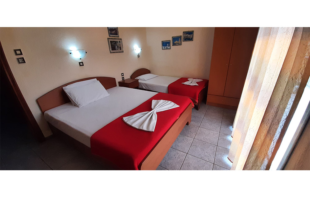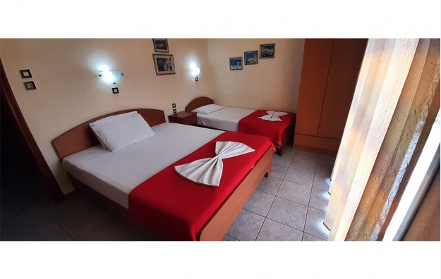 Lokacija: Vila Antigoni se nalazi u centru letovališta, na svega oko 100 metara od prelepe peščane plaže. Dvokrevetni i trokrevetni studiji se nalazi u prizemlju sa dvorišne strane, okruženi zelenilom