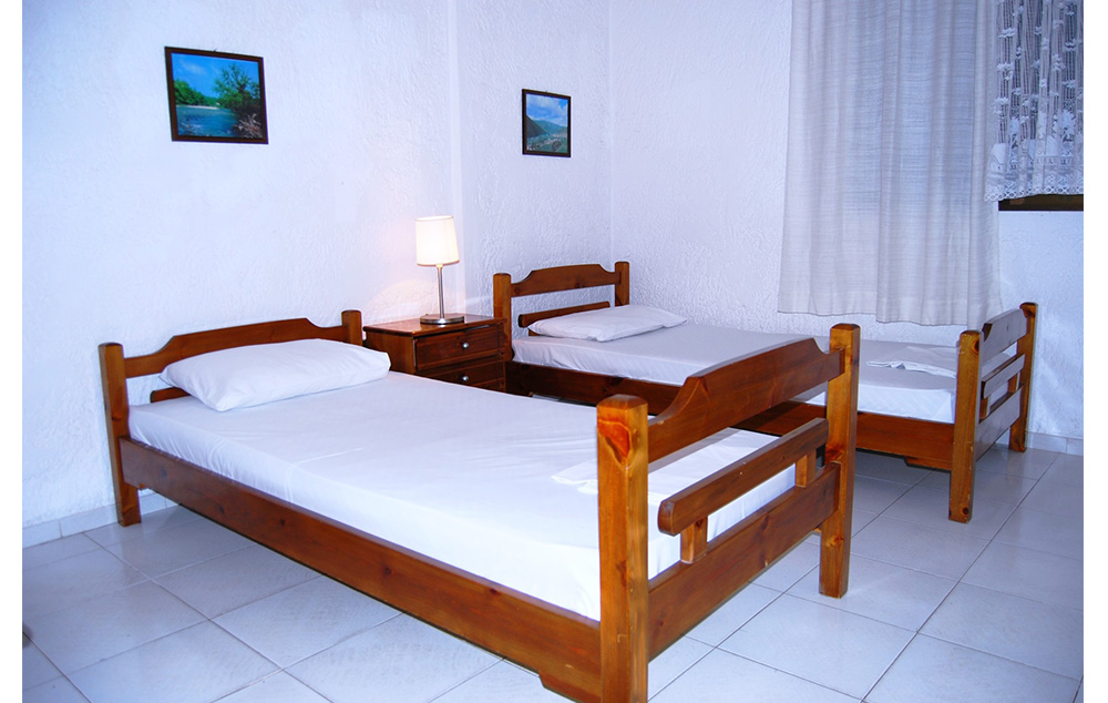 Opis:Trokrevetni i četvorokrevetni apartmani (1/3 APP, 1/4 APP) sastoje se od dve spavaće sobe (od kojih se kroz jednu ulazi u apartman, ima dva standardna ležaja ili francuski i bez vrata ka prolaznoj kuhinji, a druga ima izlaz na terasu i ima francuski ležaj ili dva standardna), male kuhinje, kupatila i velike terase sa garniturom za sedenje sa bočnim pogledom na more, okrenute prema maloj ulici i plaži.Svi apartmani su opremljeni klima uredjajem (uz doplatu na licu mesta (opcija), 8 eur dnevno po apartmanu), wi – fi Internetom i TV - om. Veličina apartmana je cca 35 kvm + terasa.Vila Rigakis Mol je B kategorije, nema peškire i nema mogućnost sopstvenog parkinga.