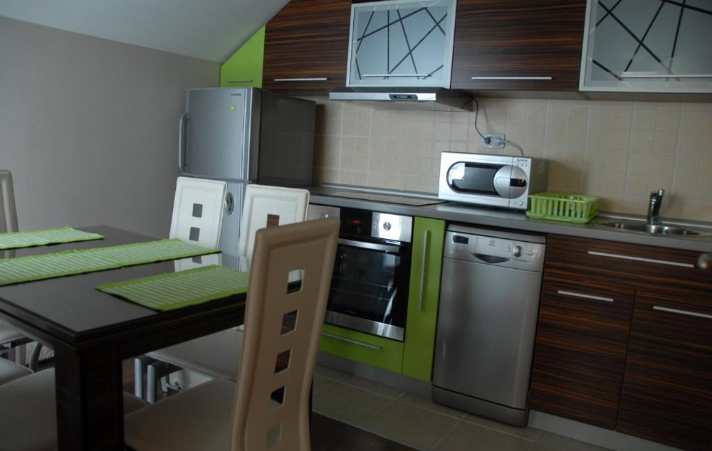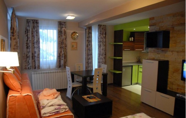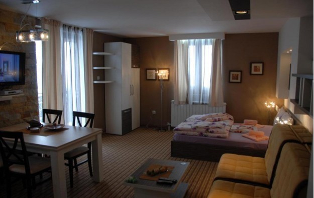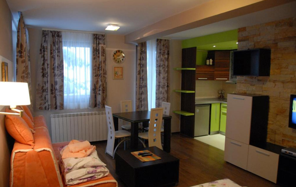 Sadržaj studija/apartmana: kompletno opremljena kuhinja, frižider, TFT televizore, DVD player, internet veza, telefon, kupatilo sa hidromasažnim tuš kabinama, fen za kosu i još mnogo toga.