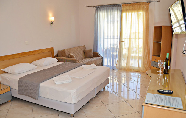 Lokacija: Ovaj hotel apartmanskog tipa se nalazi u mirnom delu mesta, udaljen je oko 300m od plaže i oko 450m od centra mesta Hanioti.
