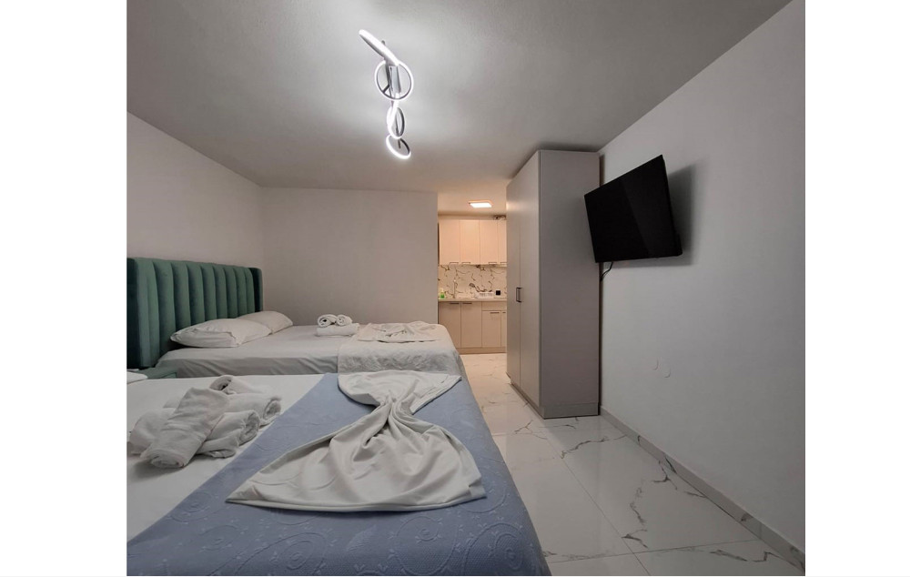 • Studio je smeštajna jedinica koja se sastoji od kupatila (tuš/WC) i jedne prostorije u kojoj se nalazi naznačeni broj ležaja i kuhinjski deo koji je opremljen rešoom, frižiderom i osnovnim posuđem