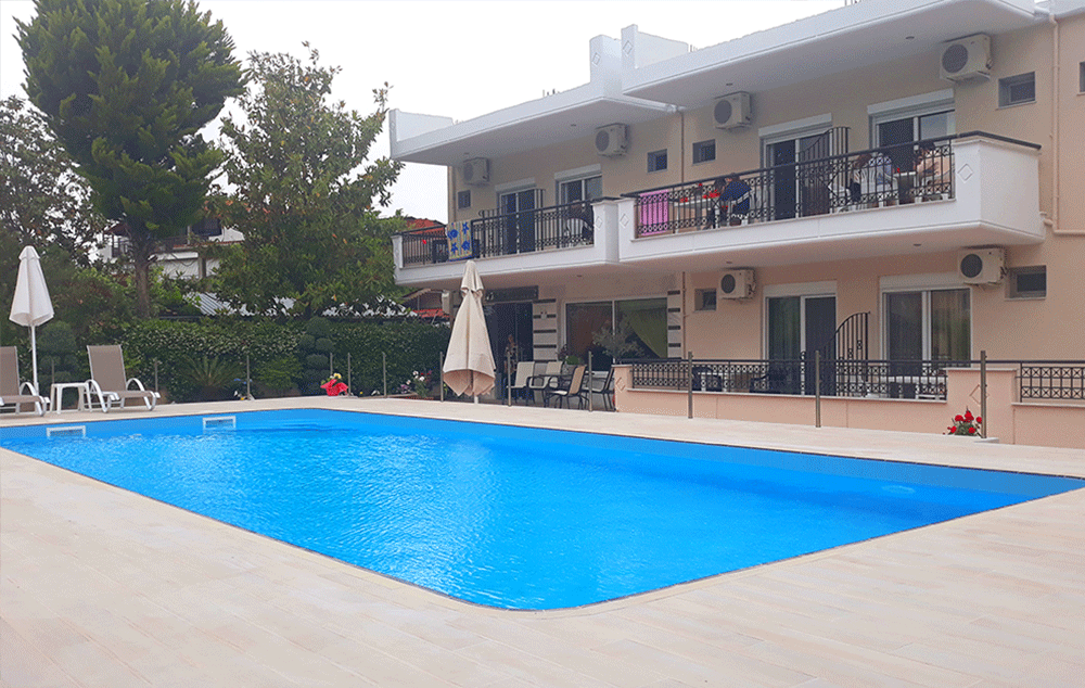 Opis: Apart/hotel Maria raspolaže trokrevetnim i četvorokrevetnim studijima koji se nalaze na prvom i drugom spratu. Smeštajne jedinice su moderno opremljene i imaju kuhinjski deo, TV, kupatilo, terasu i klima uređaj (uračunat u cenu), gledaju na bazen i more. Vila poseduje WiFi, bazen sa odvojenim delom za decu i ležaljkama oko bazena, recepciju.