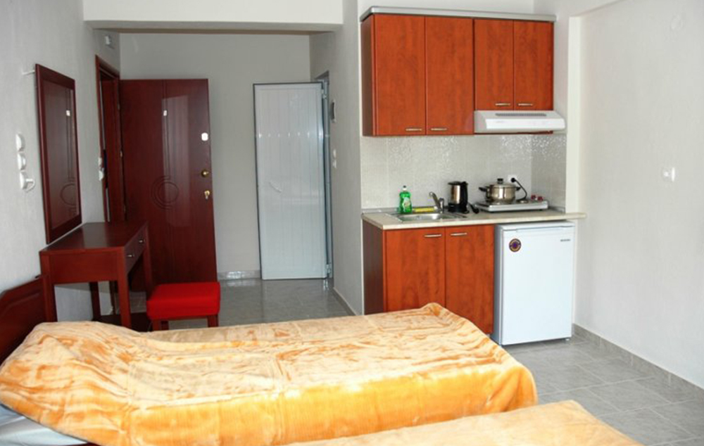 Opis: U našoj ponudi su dvokrevetni I trokrevetni studiji, kao i četvorokrevetni mezoneti. Svaka smeštajna jedinica ima opremljenu kuhinju, kupatilo/wc, terasu, TV, WiFi internet i klima uređaj (uz doplatu na licu mesta od 6€ dnevno).