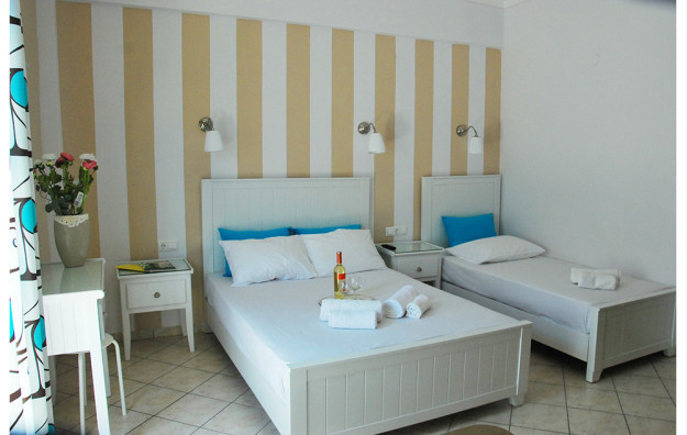Lokacija: Mali hotel apartmanskog tipa, nalazi se pored crkve, u neposrednoj blizini centra, u mirnom delu Pefkohorija, na oko 190 metara od plaže.