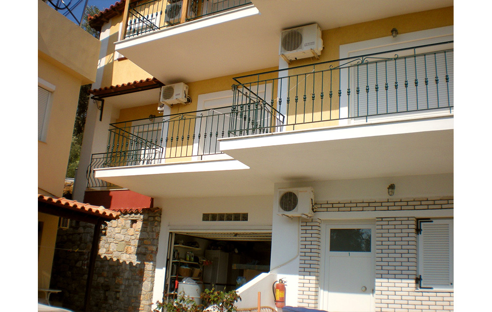 Vila Maria se nalazi u lepom mediteranskom vrtu, na idealnoj lokaciji, oko 800 metara od centra grada, na svega oko 170 metara od prelepe i jedne od najpoznatijih plaža na ostrvu, plaže Megali Amos (Velika plaža). Dvokrevetni i trokrevetni studiji vile Maria su smešteni na prvom spratu, a četvorokrevetni apartman na malo izdignutom prizemlju i svi su sa pogledom na dvorište. Opremljeni su klima uredjajem (uz doplatu na licu mesta (opcija), 8 eura dnevno po studiju/apartmanu), wi - fi Internetom i TV - om. Dvokrevetni i trokrevetni studiji sadrže opremljenu malu kuhinju sa delom za spavanje sa dva, odnosno tri standardna ležaja, kupatilo i lepu terasu sa garniturom za sedenje. Veličina studija je cca 18 – 20 kvm + terasa. Četvorokrevetni apartman se sastoji dnevnog boravka u kojem se nalazi dobro opremljena kuhinja (veliki frižider sa zamrzivačem, šporet sa rernom...) trpezarijski sto, ugaona sofa na kojoj može spavati dvoje dece do 12 godina, spavaće sobe sa francuskim ležajem, kupatila i velike terase sa garniturom za sedenje i pogledom na vrt. Veličina apartmana je cca 33 kvm + terase. Vila Maria je B kategorije, ima peškire i javni besplatni parking preko puta vile. Najbliži mini market je ispred vile, a autobuska stanica u neposrednoj blizini. Vila je idealna za mlade zbog blizine grada, ali i za porodice, jer je plaža u neposrednoj blizini, ima zidani roštilj i dvoršte koje je na raspolaganju deci.