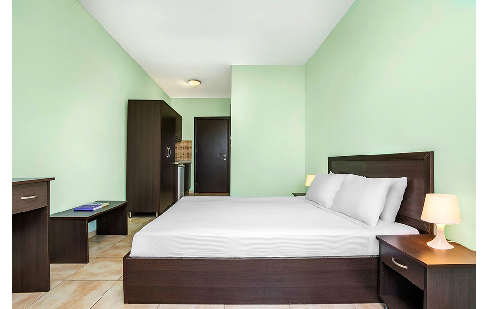 •Studio je smeštajna jedinica koja se sastoji od kupatila (tuš/WC) i jedne prostorije u kojoj se nalazi naznačeni broj ležaja i kuhinjski deo koji je opremljen rešoom, frižiderom i osnovnim posuđem