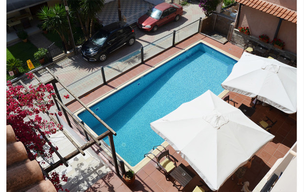 Lokacija: Mali hotel apartmanskog tipa, nalazi se pored crkve, u neposrednoj blizini centra, u mirnom delu Pefkohorija, na oko 190 metara od plaže.