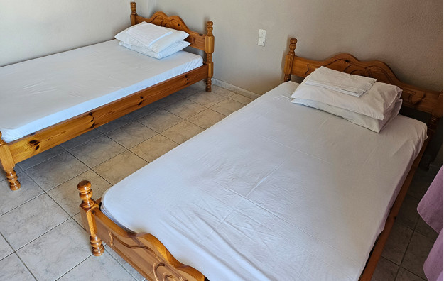 Opis: Poseduje studija sa dva francuska ležaja po grčim standardima (širine 1.10m) smeštena na prvom spratu, od kojih svi imaju pogled na more, direktan ili bočni. Svaka od smeštajnih jedinica ima opremljen kuhinjski deo, kupatilo/wc, zajedničku (prolaznu) terasu, TV, WiFi, A/C, čije se korišćenje naplaćuje 6€ po danu.