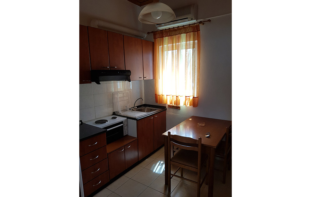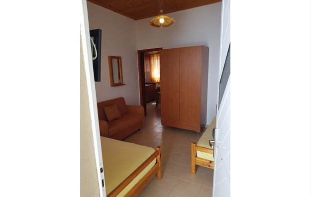 Opis: Poseduje studija namenjena za smeštaj dve do tri osobe, smeštena u prizemlju. Svaka od smeštajnih jedinica ima dva kreveta po grčkim standardima (širine 1.20 ), opremljen kuhinjski deo, kupatilo/wc, terasu, TV,WIFI i klima uredjaj (uz doplatu na licu mesta od 6e dnevno).