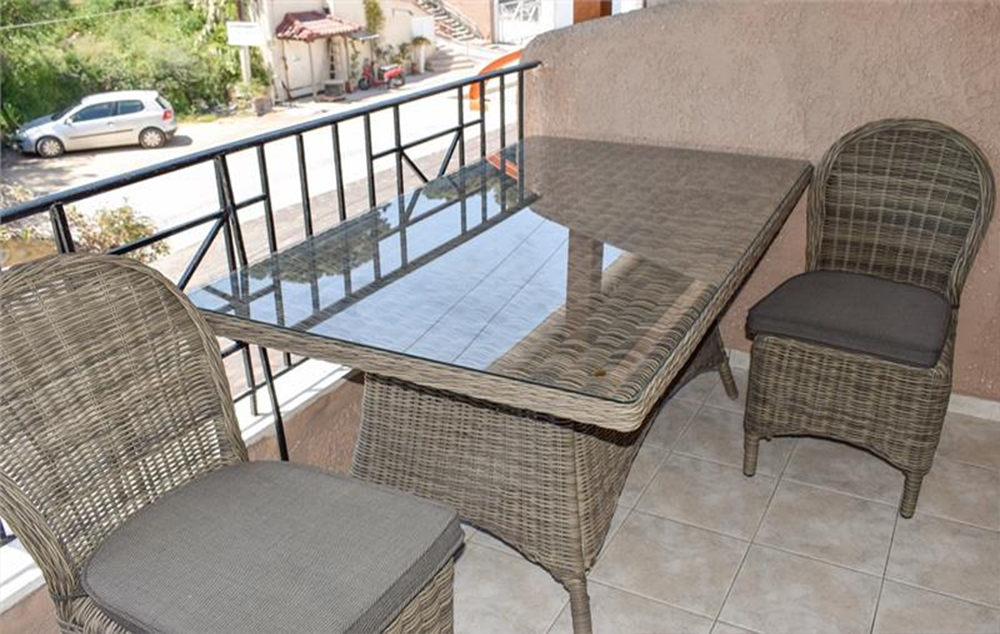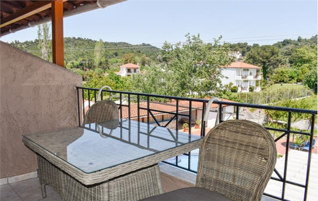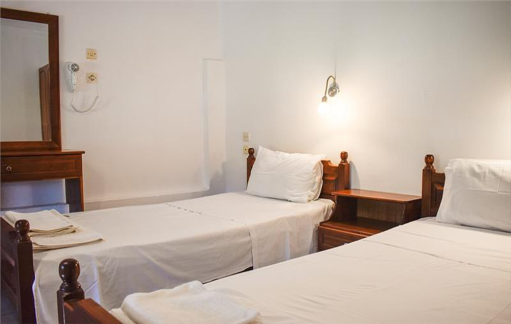 Vila Maria se nalazi u lepom mediteranskom vrtu, na idealnoj lokaciji, oko 800 metara od centra grada, na svega oko 170 metara od prelepe i jedne od najpoznatijih plaža na ostrvu, plaže Megali Amos (Velika plaža). Dvokrevetni i trokrevetni studiji vile Maria su smešteni na prvom spratu, a četvorokrevetni apartman na malo izdignutom prizemlju i svi su sa pogledom na dvorište. Opremljeni su klima uredjajem (uz doplatu na licu mesta (opcija), 8 eura dnevno po studiju/apartmanu), wi - fi Internetom i TV - om. Dvokrevetni i trokrevetni studiji sadrže opremljenu malu kuhinju sa delom za spavanje sa dva, odnosno tri standardna ležaja, kupatilo i lepu terasu sa garniturom za sedenje. Veličina studija je cca 18 – 20 kvm + terasa. Četvorokrevetni apartman se sastoji dnevnog boravka u kojem se nalazi dobro opremljena kuhinja (veliki frižider sa zamrzivačem, šporet sa rernom...) trpezarijski sto, ugaona sofa na kojoj može spavati dvoje dece do 12 godina, spavaće sobe sa francuskim ležajem, kupatila i velike terase sa garniturom za sedenje i pogledom na vrt. Veličina apartmana je cca 33 kvm + terase. Vila Maria je B kategorije, ima peškire i javni besplatni parking preko puta vile. Najbliži mini market je ispred vile, a autobuska stanica u neposrednoj blizini. Vila je idealna za mlade zbog blizine grada, ali i za porodice, jer je plaža u neposrednoj blizini, ima zidani roštilj i dvoršte koje je na raspolaganju deci.