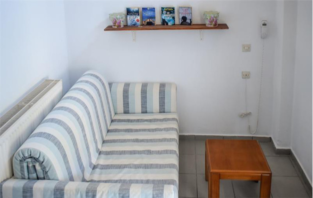 Vila Noula se nalazi u lepom mediteranskom vrtu, na idealnoj lokaciji, oko jedan kilometar od centra grada, pored plaže Megali Amos (Velika plaža). Od kraja Megali Amos plaže (jedne od najlepših na ostrvu) deli je samo bašta - dvorište i glavni put. Do centralnog dela ove prelepe plaže je oko 250 metara. Studiji vile Noula su smešteni na prvom spratu, a apartmani na drugom i svi su sa pogledom na dvorište, more i plažu, opremljeni klima uredjajem (uz doplatu na licu mesta (opcija), 8 eur dnevno po studiju/apartmanu) i wi - fi Internetom i TV - om. Dvokrevetni i trokrevetni studiji sadrže opremljenu malu kuhinju sa delom za spavanje sa dva, odnosno tri standardna ležaja ili francuski i standardni, kupatilo i lepu terasu sa garniturom za sedenje. Veličina studija je cca 18 - 20 kvm + terasa. Četvorokrevetni apartman se sastoji od prostorije – sobe, u kojoj se nalazi mala kuhinja i dva ležaja (standardni i sofa na kojoj moze spavati odrasla osoba), spavaće sobe sa dva standardna ležaja, kupatila (ulaz iz spavaće sobe) i velike terase sa garniturom za sedenje i pogledom na more. Veličina apartmana je cca 28 kvm + terase. Vila Noula je B kategorije, ima peškire i mogućnost sopstvenog parkinga za ograničen broj vozila. Najbliži mini market je udaljen oko 250 metara, a restoran oko 650 metara. Vila je idealna za mlade zbog blizine grada, ali i za porodice, jer je plaža u neposrednoj blizini, a veliki vrt i dvorište na raspolaganju deci. Kuhinje u studijima i apartmanima su odgovarajuće za pripremanje manje komplikovanih obroka, pogodne za tzv. “light cooking, snekove, testenine...”.