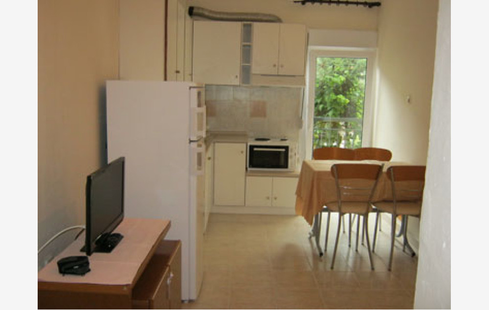 Opis: Svi studiji su opremljeni wi - fi Internetom, TV-om i klima uredjajem (uz doplatu na licu mesta (opcija), 5 eur dnevno po studiju/apartmanu).Dvokrevetni i trokrevetni studiji (1/2 STD, 1/3 STD) su na visokom prizemlju i na prvom spratu. Sadrže malo izdvojenu opremljenu kuhinju, deo za spavanje u kojem se nalaze dva, odnosno tri ležaja, mali orman i prelepu terasu sa garniturom za sedenje i tendom. Veličina studija je cca 20 kvm + terasa + terasa.Vila Maria je B kategorije, nema peškire i ima mogucnost sopstvenog parkinga.
