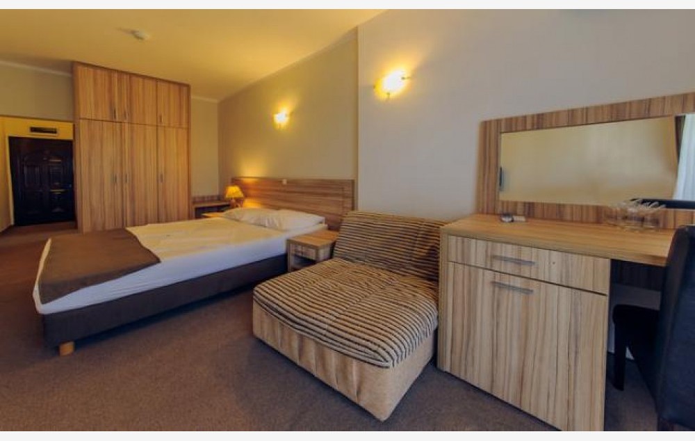 Sobe: kupatilo tuš, WC, fen, telefon, SAT TV, klimu, sef uz doplatu, mini-bar i balkon
