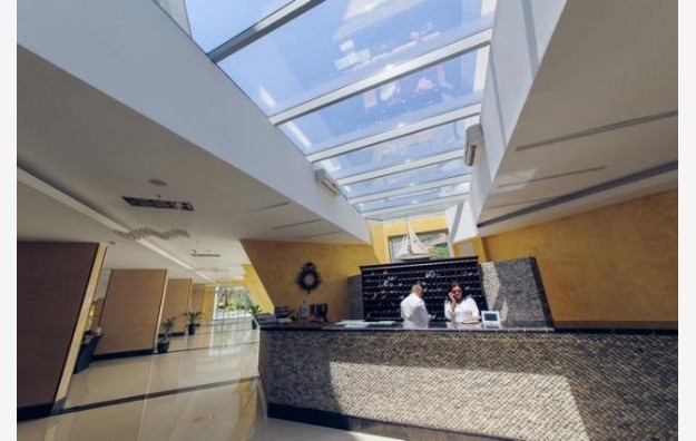 Lokacija: Nalazi se na 80 m od plaže. Hotelsko turistički kompleks se prostire na 11 000 m2 mediteranskog parka sa 140 stabala svetog drveta maslina koje su stare i preko 450 godina.
