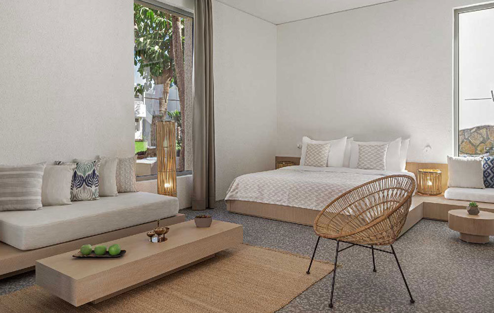 Sve sobe: Olive superior sobe su veličine oko 61m2 i sastoje se od kupatila (Tuš-wc, fen za sušenje kose), telefon, TV, klima, mini bar, ketler, aparat za kafu, terasa. Maksimalno borave 3 odrasle osobe. Olive family sobe veličine oko 75m2, sastoje se iz dve odvojene sobe i opremnjene su isto kao i olive superior sobe. Maksimalno borave 4 odrasle osobe. Olive garden sobe veličine su oko 53m2 i opremnjene su isto kao i olive superior sobe. Maksimalno borave 3 odrasle osobe. Olive garden family veličine su oko 76m2, sastoje se iz dve spavaće sobe, od kojih se u jednoj nalaze kreveti na sprat, opremenjene su isto kao i olive superior sobe. Maksimalno borave 4 odrasle osobe. Executive sobe imaju pogled na baštu ili pogled na more, veličine su oko 61m2 i opremnjene su isto kao i olive superior sobe. Maksimalno borave 3 odrasle osobe. Hotel poseduje i druge sobe većih struktura i različite opremljenosti.