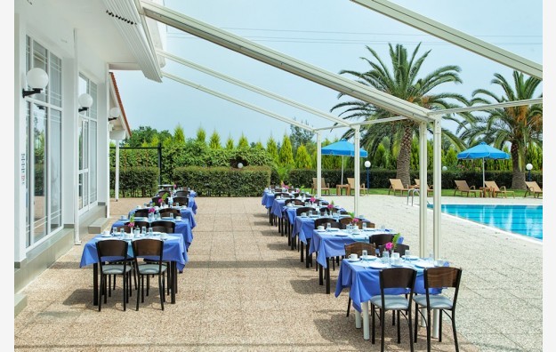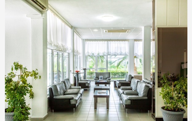 SADRŽAJ: Recepcija, doktor na poziv , parking, wi fi ( samo u lobiju), restoran, bazen veličine olimpijskog bazena, bar pored bazena, suncobrani i ležaljke na plaži uz doplatu, dečiji bazen, teretana